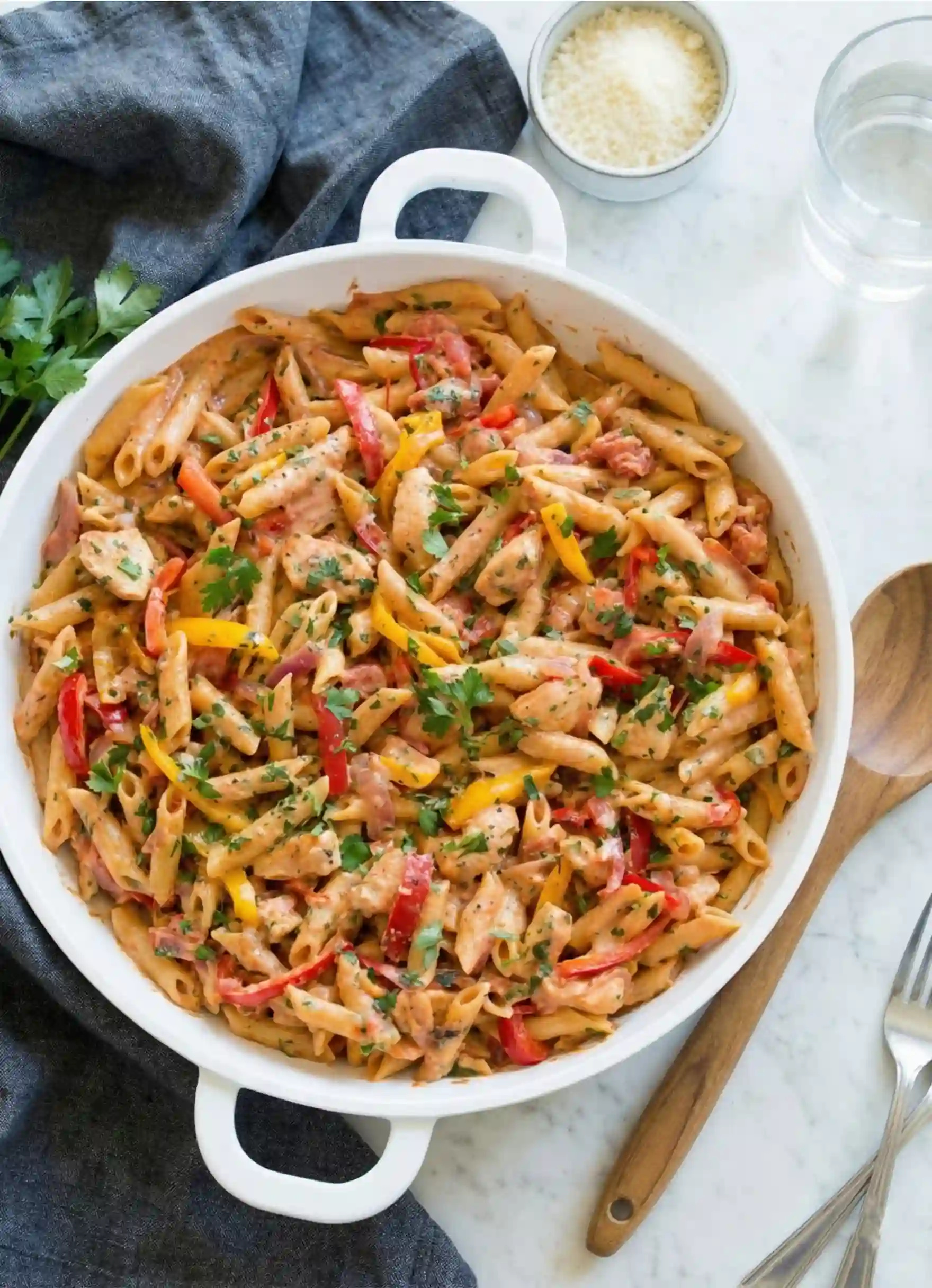A creamy and comforting one pot Cajun chicken pasta made with tender chicken, penne pasta, bell peppers, and bold Cajun seasoning. Easy, reliable, and perfect for busy weeknights.